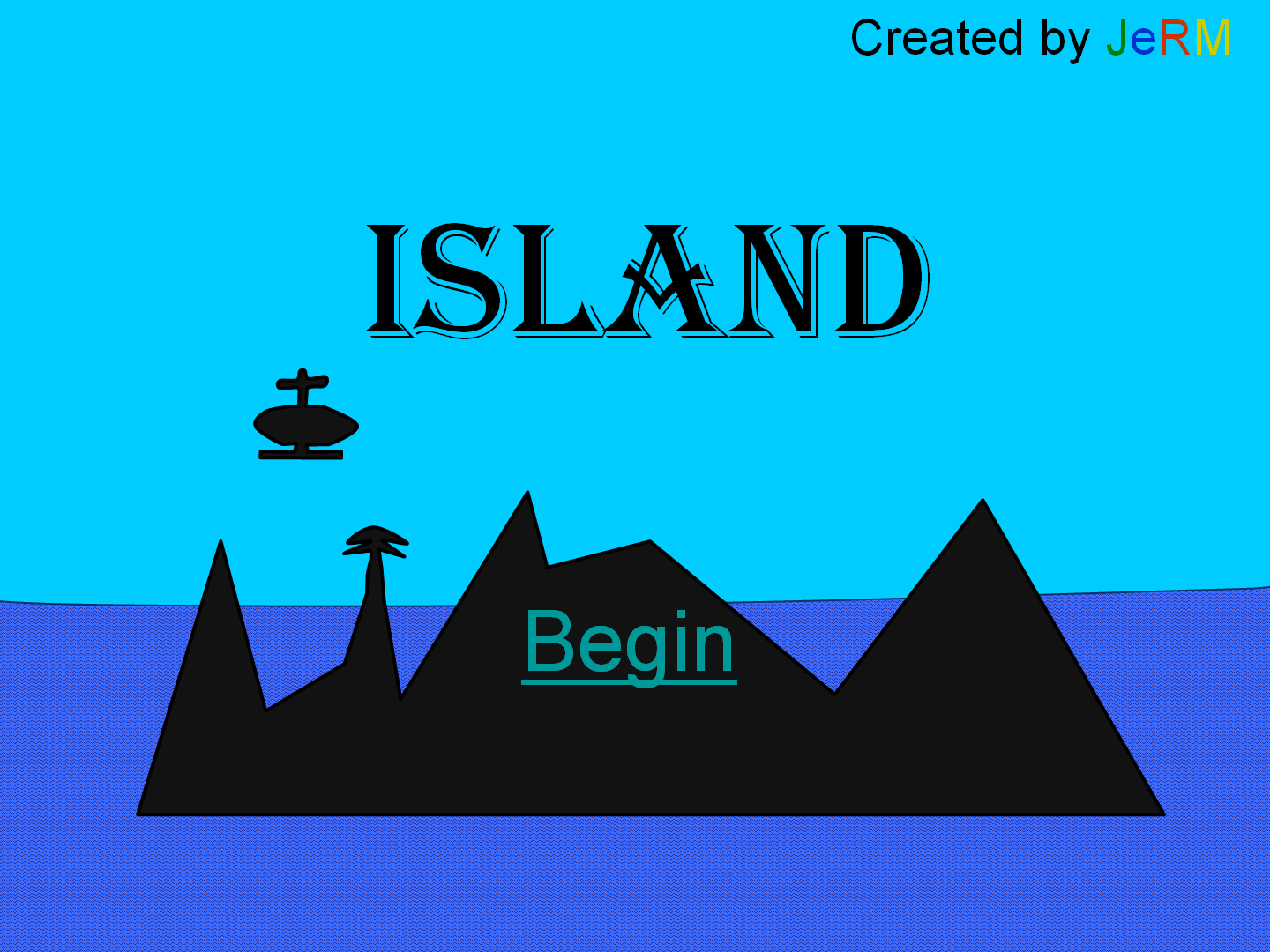 For a bit, my game engine and animation tool of choice was PowerPoint, which was mostly because I liked the way the polygon tools worked. Island takes the form of a Choose-Your-Own-Adventure, where you're presented with three choices, only one of them being the correct one. It's the classic marooned on an island trope, and you need to find a way off of it. |